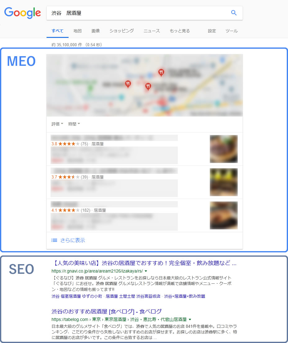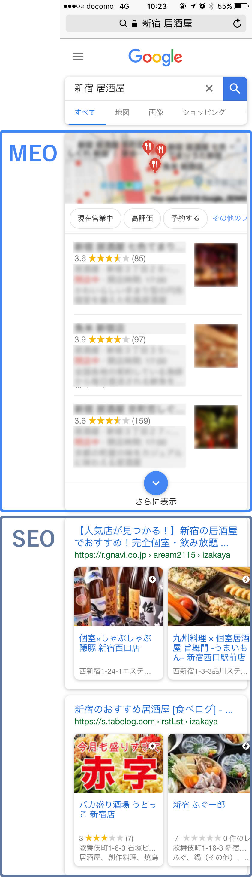 MEOが集客に優れている点としてSEO表示よりも上位表示されるということが挙げられます。